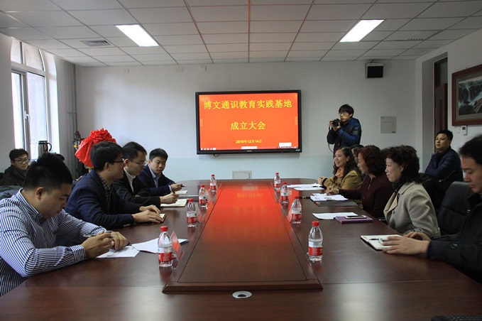 2016年12月14日上午10时30分,由天津大学法学院和海河中学联合举办的“博文通识教育实践基地成立大会”在天津市海河中学博文楼112会议室举行。国际世界冠军联合会(IWCF)主席崔迟申、常务理事长高伟伟,天津大学法学院党委副书记、副院长赵成志,天津大学团委副书记刘立山,海河中学校长钱丽梅,海河中学党委书记王秀文,海河中学校办主任张朝燕,海河中学教务主任孙涛,天津大学法学院辅导员高仓健,天津大学法学院辅导员曹嘉林出席了此次成立大会。参加大会的还有天津大学法学院博文班的同学代表,会议由海河中学校办主任张朝燕主持。