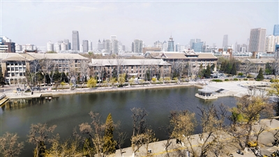 从教室望出去,春天的校园内西府海棠、垂丝海棠、绚丽海棠有序地开放,淡粉的、玫红的、白色的,树冠高低不同错落有致地陪伴着莘莘学子。
