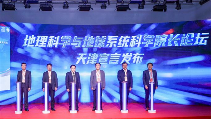 天津大学地球系统科学学院刘丛强院长、陕西师范大学董治宝副校长、北京大学城市与环境学院贺灿飞院长、北京师范大学地理科学学部李小雁部长、南京大学地理与海洋科学学院王先彦院长、清华大学地球系统科学系罗勇主任,共同启动宣言发布仪式。
