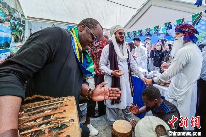 5月10日,天津,来自坦桑尼亚的留学生演奏乐器。当日,以“上合之约 津彩国际”为主题的天津市外国留学生文艺展演暨天津大学第十五届国际文化节举办。来自全球近50个国家的千余名在津留学生欢聚天津大学,通过歌舞展演、国家展台展览、风味小吃制作与品尝等形式,向参观者展示各国的人文风情。中新社记者 佟郁 摄