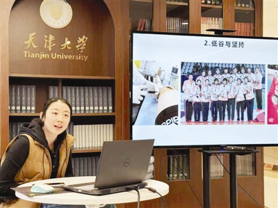 “每个完美扣杀背后,都是上万次挥臂练习。”女排世界冠军、天津大学教师姚迪同时向两地学生全景式展示职业运动员训练日常。