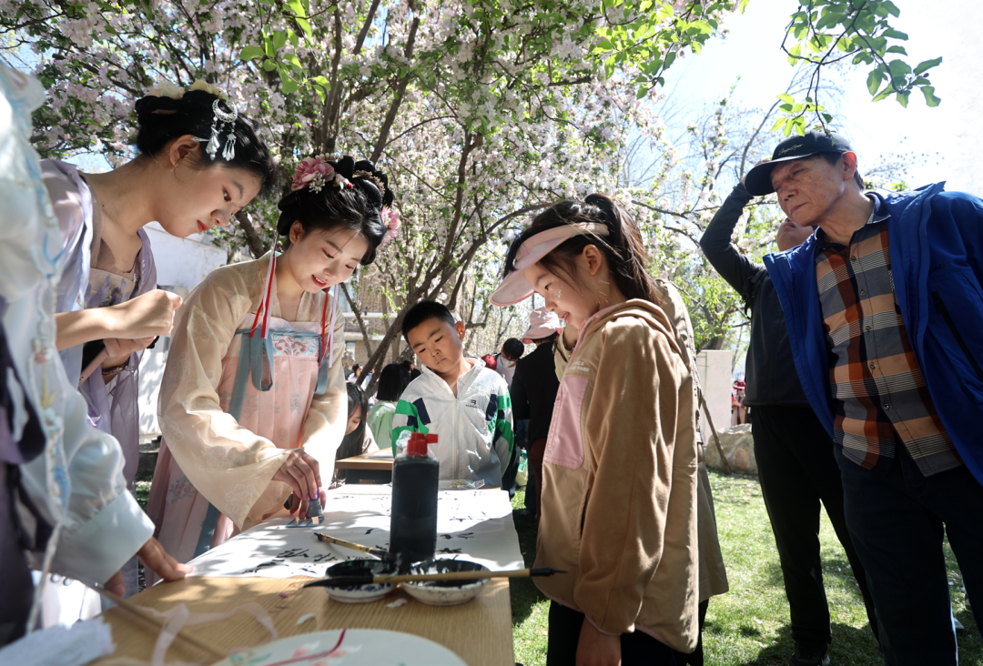 “我早上6点就到了卫津路校区。”市民张先生告诉记者,为了看满园海棠,更为了感受130年天津大学的校园魅力。花自成蹊。赏海棠的人群摩肩接踵,铭德道、花堤路以及第九教学楼、法学院、王学仲艺术研究所等处的连片花树,依旧是经典打卡处。随处可见各种镜头,记录繁花世界里的人潮汹涌。丰富多彩的学院主题活动、学生社团风采展示,也吸引了各个年龄层的积极参与。铭德道上,13米“百卅长卷”千人拼图,一名5岁小朋友在爸爸的帮助下按下了一块色彩;来自新华中学的张同学,在北洋诗词社的飞花令擂台对句花诗;图书馆外的AI画海棠,直接描绘心中的天大海棠故事……