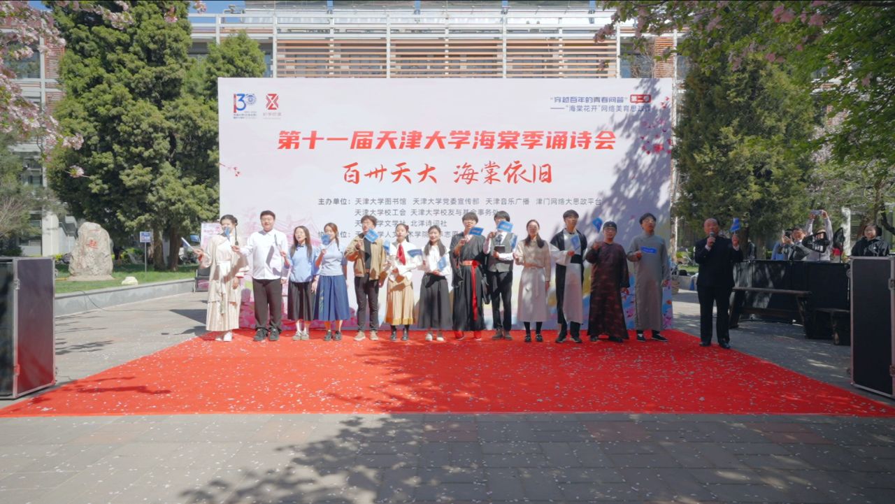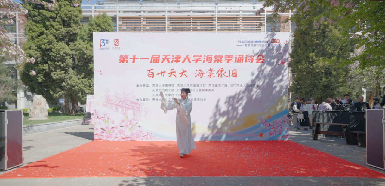本站讯 (记者张强 韩雨晨)人间四月,海棠初绽。日前,“百卅天大 海棠依旧”天津大学第十一届海棠季师生诵诗会在春日暖阳中如约启幕。这场融合诗词雅韵、精神传承与创新表达的文化盛宴,不仅是“穿越百年的青春问答”第二季——“海棠花开”网络美育思政课系列活动的重要实践,更以美育为经纬,吸引众多师生校友、市民游客线上线下共同参与,让思政教育在诗意的土壤中生根抽芽。