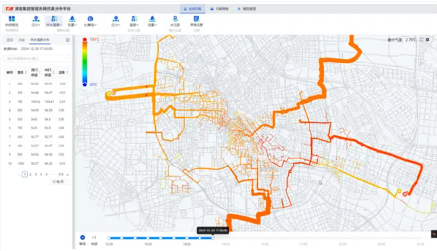 团队实施。平台集成了自动读图建模,监控与数据采集系统通讯,静态水力计算,动态热力计算,水力惯性分析,动态水力仿真,动态温度、流量、压力综合计算技术,热源在线预调度,实时工况自寻优,在线-离线计算等核心功能。平台具有自主知识产权,是积极响应国家“双碳”目标和智慧城市建设需求的重要实践成果,成功入选了《2024年国有企业应用场景白皮书》,为供热行业提供了智慧供热的可推广解决方案。
