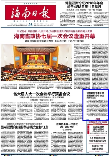 根据协议,双方合作立足于海洋强国、科教兴国、创新驱动发展等国家战略和“一带一路”建设,着眼于海南“三大优势”,紧密对接海南十二个重点产业,形成长效合作机制,在科技研发、促进科技成果产业化、推动科技交流服务、支持生态宜居建设、加强教育合作与人才交流等方面开展合作。天津大学鼓励新利18网址登录