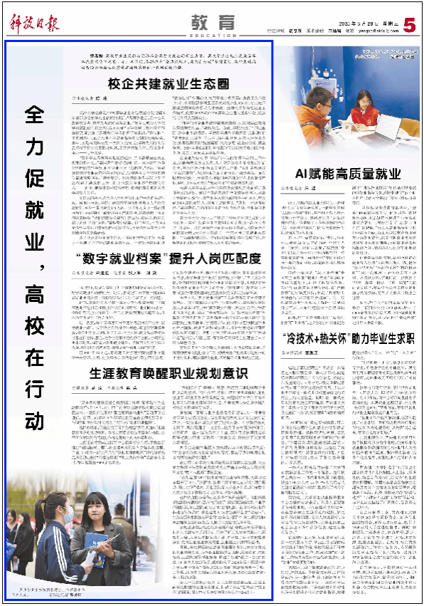 编者按高校毕业生是推动经济社会高质量发展的有生力量。高校毕业生就业是关系基本民生的重中之重。毕业季临近,本报推出“全力促就业,高校在行动”专题策划,集中呈现高校为助力毕业生高质量就业所采取的一系列创新举措。