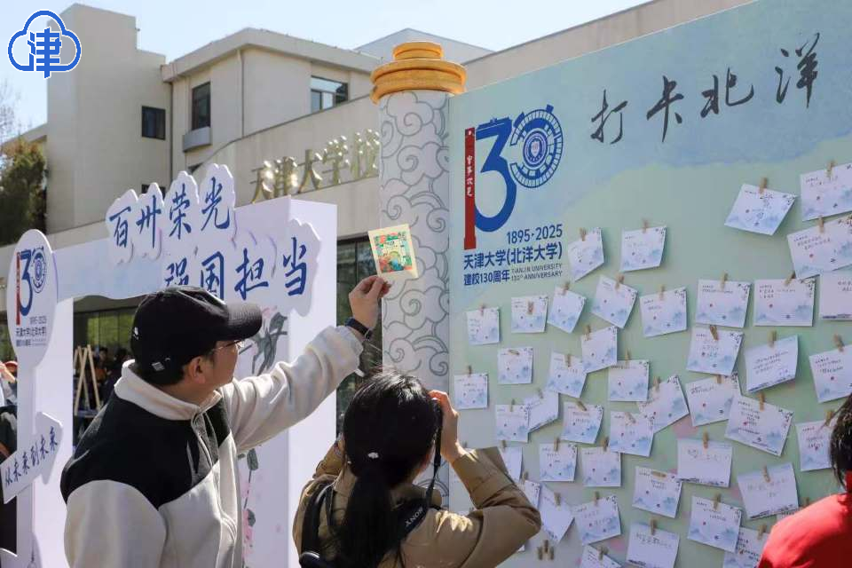 “打卡北洋 为百卅天大送祝福”活动成为师生校友情感共鸣的焦点。校友之家的白色廊柱下,留言板被密密麻麻的祝福填满:89岁老校友写下“愿母校跻身世界一流”,高三学子许愿“今秋成为天大人”,一家三代合影留念并留言“与天大共成长”,点点滴滴的祝福将师生游客的百卅情怀化作可触可感的记忆。