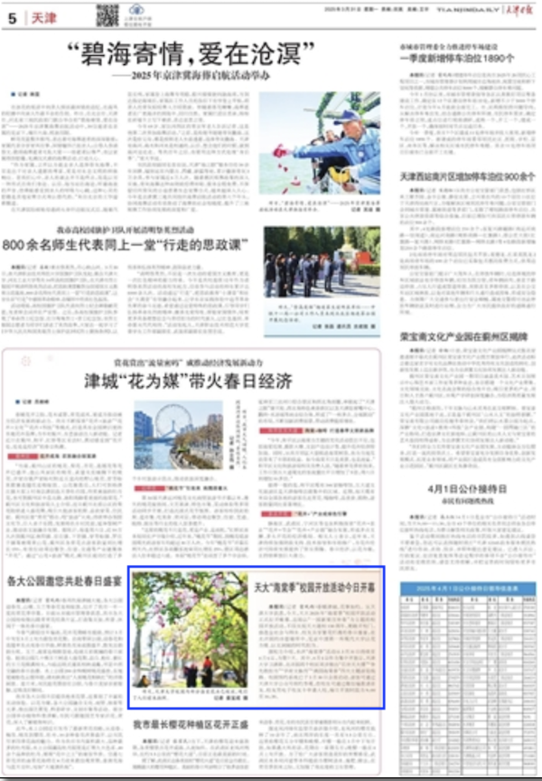 本站讯(记者 雷风雨)春暖津城,花事如约。从天津大学获悉,今天,天大2025年“海棠季”校园开放活动正式拉开帷幕,这场以“一园新棠百卅春”为主题的校园开放活动,不仅庆祝天大建校130周年,更敞开校门,盛邀全社会与师生、校友共享繁花烂漫的春日盛宴,在北洋园的诗意徜徉中,见证中国第一所现代大学以花为媒、以文润城的时代担当。