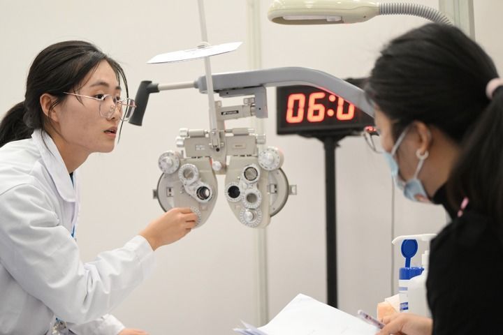 医学生在天津医科大学参加第二届全国眼视光医学专业本科生临床技能大赛。记者 李然 摄