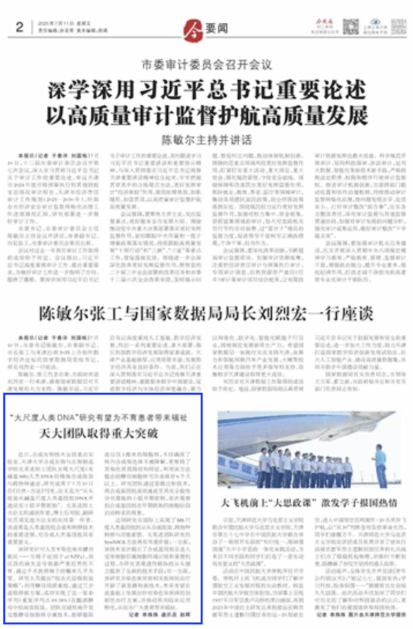 近日,合成生物技术全国重点实验室、天津大学合成生物与生物制造学院元英进院士团队实现大尺度(兆碱基Mb)人类DNA的精准合成组装与跨物种递送,研究成果于7月10日在《自然-方法》刊发,论文名为“从头组装兆碱基尺度人类基因组DNA并递送至小鼠早期胚胎”。元英进院士为论文的通讯作者,博士后刘悦、副研究员周见庭为论文的共同第一作者。该成果是人类基因组合成和转移技术的重要进展,对合成人类基因组具有重要意义。