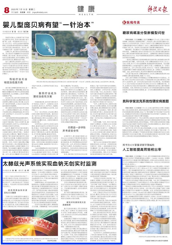 基于这些临床痛点,团队创新性地采用了基于“水静音”的太赫兹光声技术,研发了新型太赫兹光声系统。田震介绍,该系统为无创实时血钠监测提供了全新解决方案。