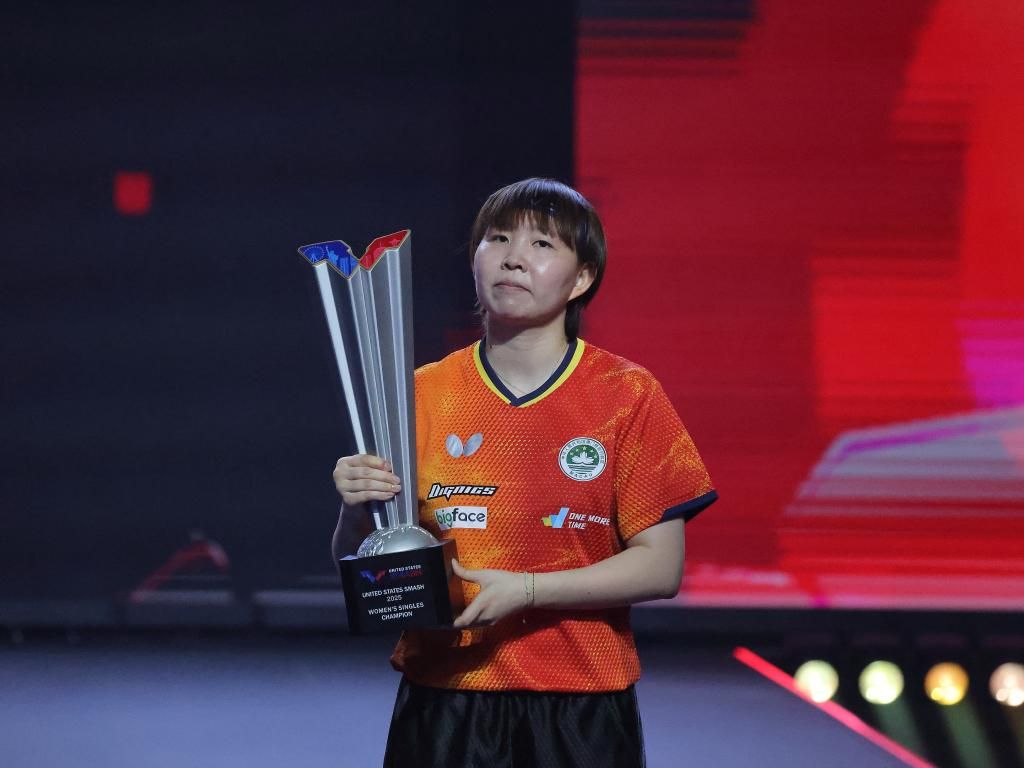 7月13日,冠军朱雨玲在颁奖仪式上。新华社发(邱晨摄)