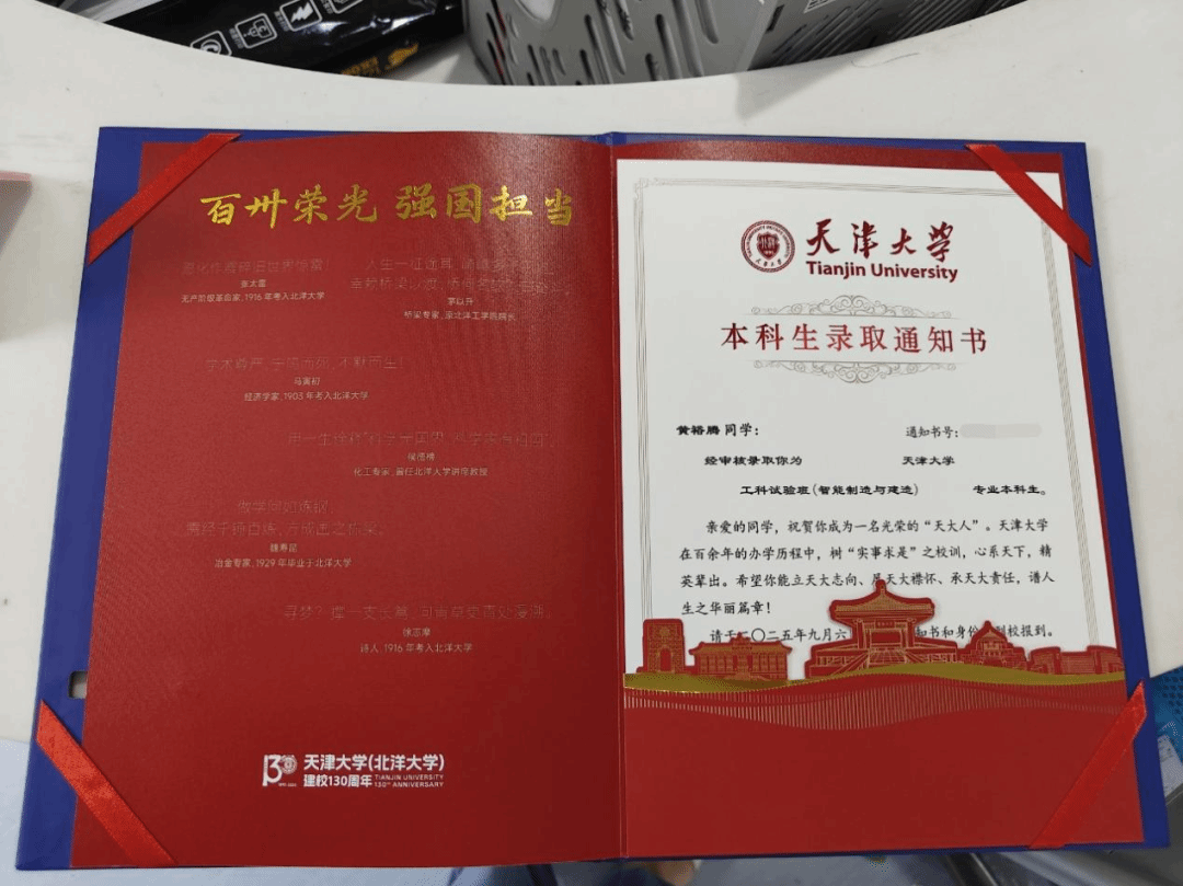 在他被天津大学录取后第一时间