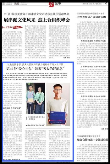 “老师,我被天津大学录取了!”今年暑假,顾文兵加入了理学院赴宕昌县的暑期社会实践队,成为支教队伍中的一员。“正是天大老师和学长学姐们持续不断的关爱,托起了我的大学梦。”手捧录取通知书的顾文兵坚定地说,“现在,该我接过这支爱心接力棒,把这份‘天大’的情谊,继续传递下去。”