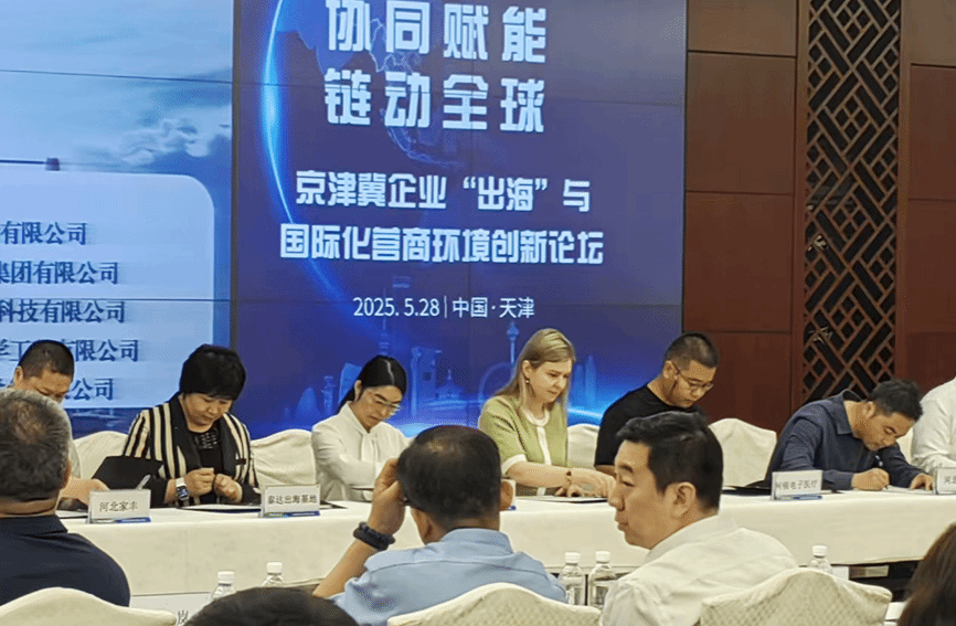 2025年5月28日,苏丽媛(后排右三)参加在天津举办的“协同赋能 链动全球”京津冀企业“出海”与国际化营商环境创新论坛。受访者供图