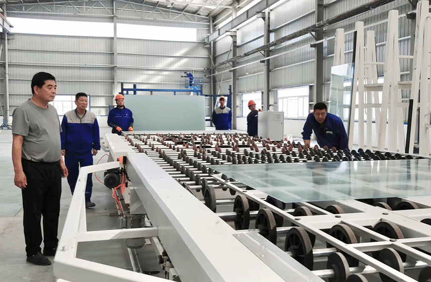 LOW-E镀膜玻璃生产车间里正在生产。明源丝路工业公司供图