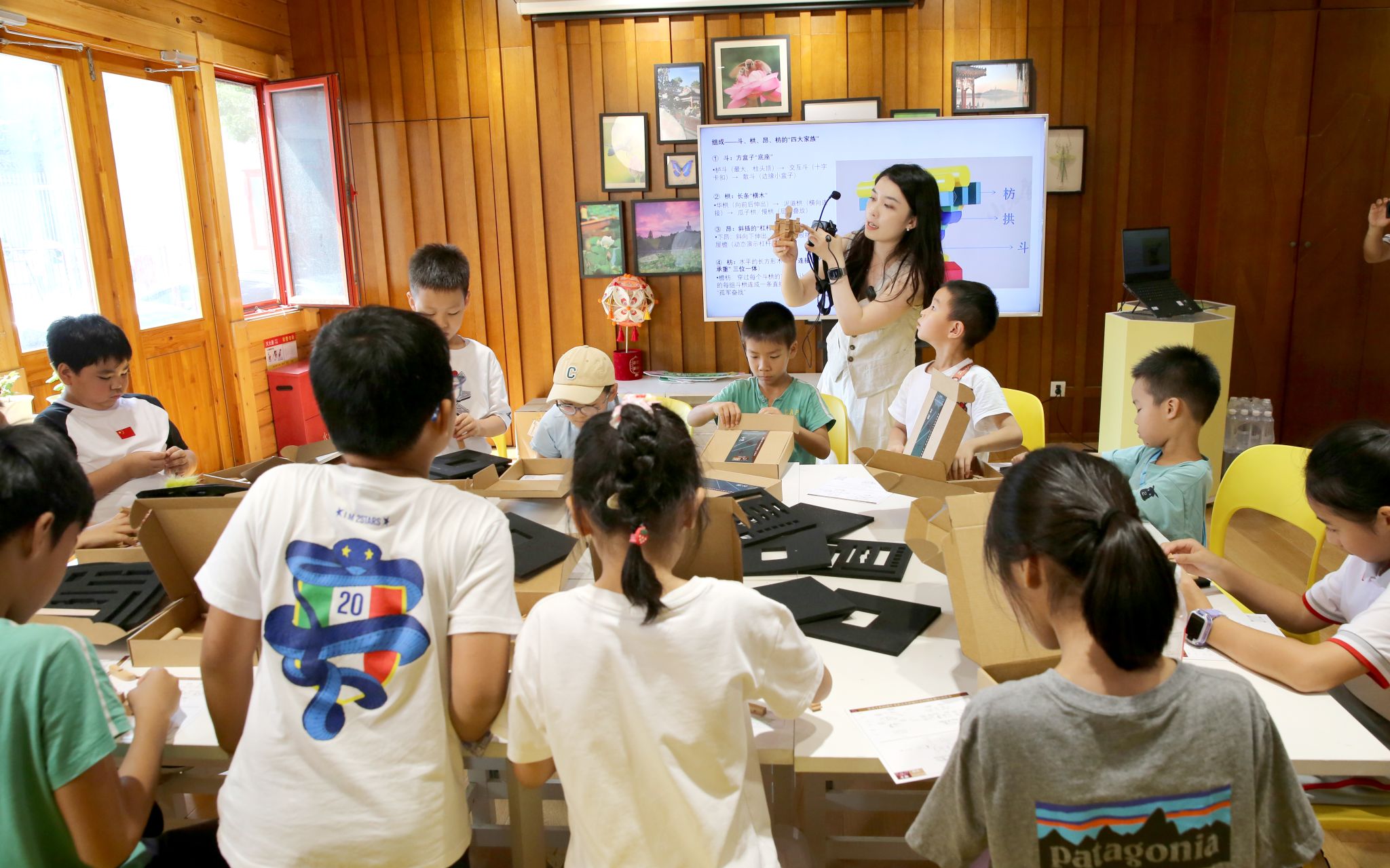 9月13日,天津大学建筑学院教授张凤梧给小学生讲解园林知识。