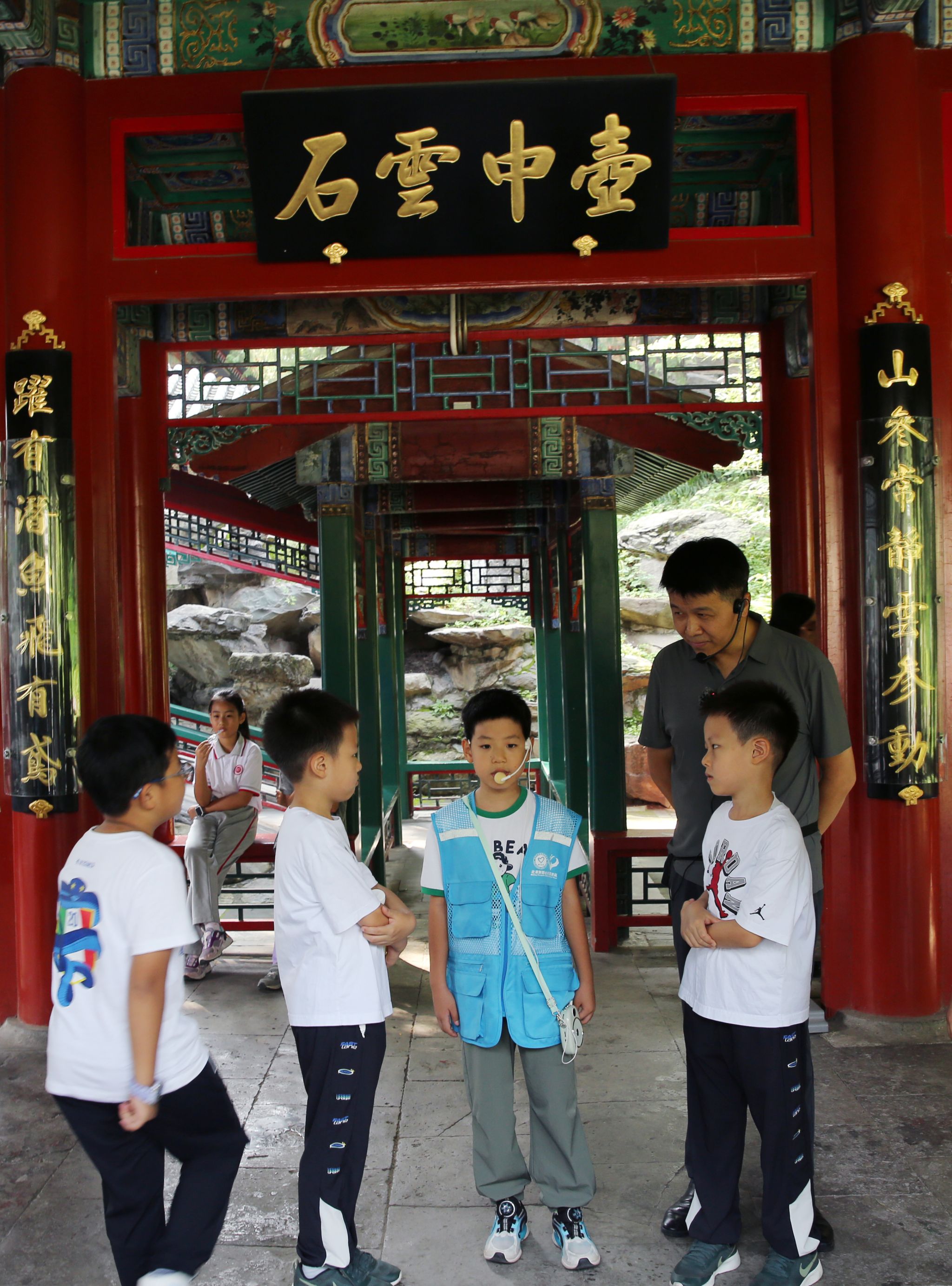 今年适逢北京市北海公园对公众开放100周年,《让我们荡起双桨》创作70周年,也是天津大学与北海公园合作开展园林古建测绘研究40周年。本次活动以“园林与建筑文化”为主题,通过专业讲解、沉浸体验和动手实践等方式,展示北海公园的造园艺术。十余名小学生在天津大学建筑学院教授张凤梧的带领下参观静心斋、濠濮间、琼华岛等代表性景点,系统了解北海在园林布局、建筑形制等方面的独特价值,领略古典园林之美。