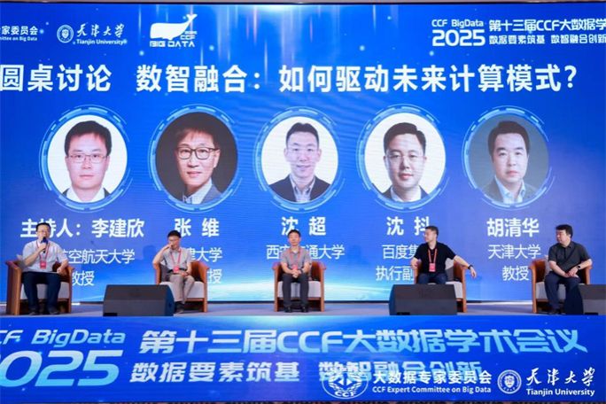 论坛特邀天津大学张维教授、西安交通大学沈超教授、百度集团执行副总裁沈抖博士、天津大学胡清华教授和与会者展开深度交流。各位专家结合自身研究与实践经验,以“数智融合:如何驱动未来计算模式?为主题”探讨了未来计算模式的发展路径、技术挑战与创新机遇等。随后各位专家对现场师生提问作出了深入而详实的回应。他们的见解不仅拓宽了学术视野,也激发了与会学者对智能信息系统演进方向的多元思考,为未来研究与应用提供了富有建设性的启发。