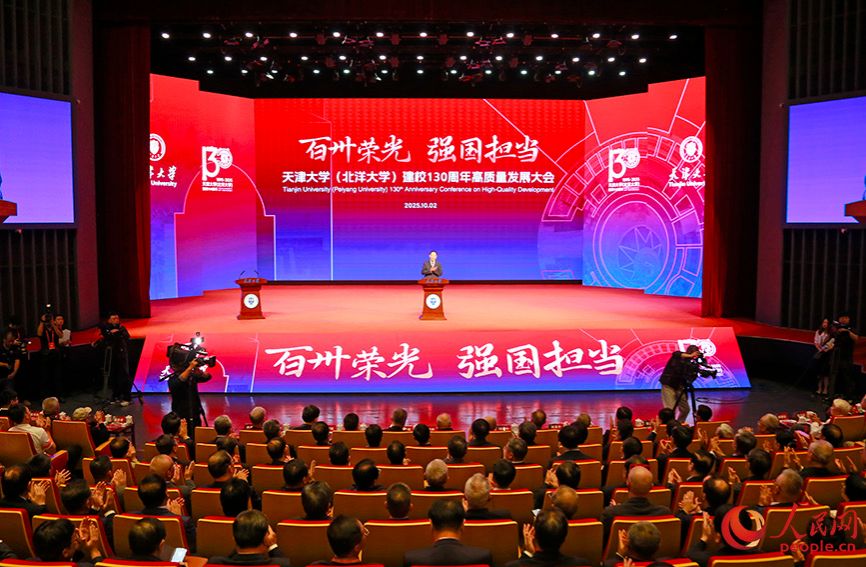 人民网天津10月3日电 (记者崔新耀)10月2日,天津大学(北洋大学)建校130周年高质量发展大会在该校北洋园校区求实会堂举行。