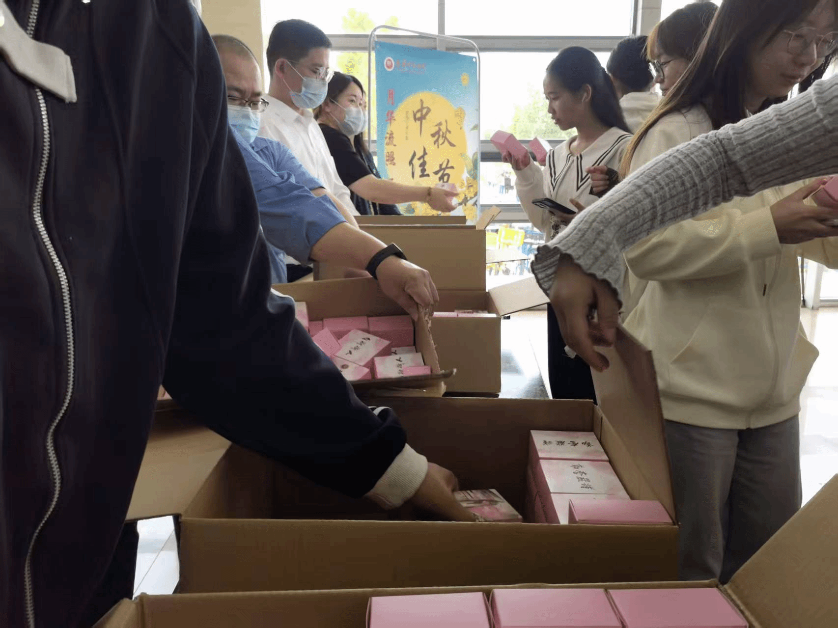为弘扬中华优秀传统文化,让每一位在校师生感受到家的温暖,学校特别组织了“中秋送祝福”活动,在各食堂入口处为师生们免费发放专属定制月饼。领取现场秩序井然,欢声笑语不断。