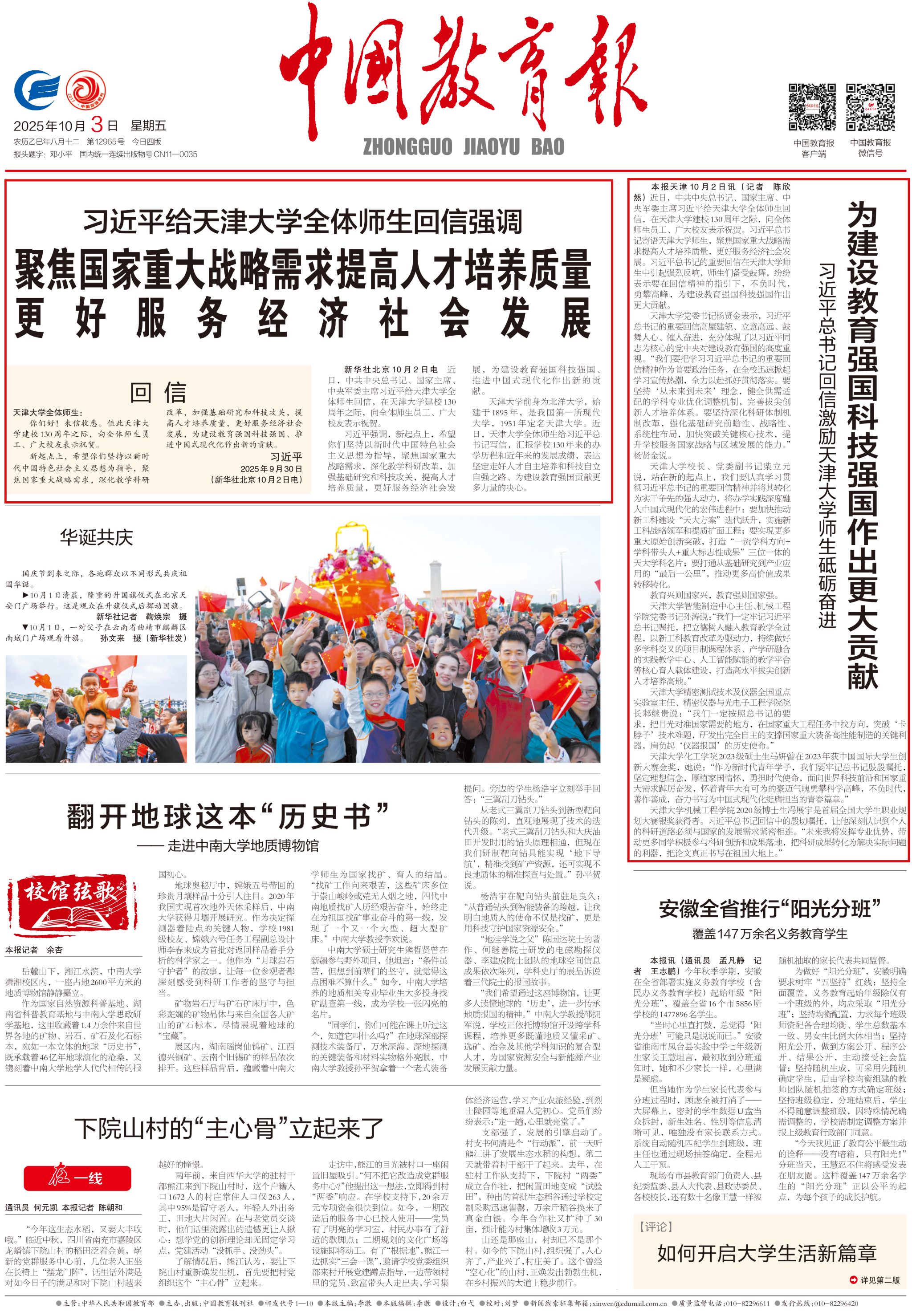 《中国教育报》2025年10月3日 01版