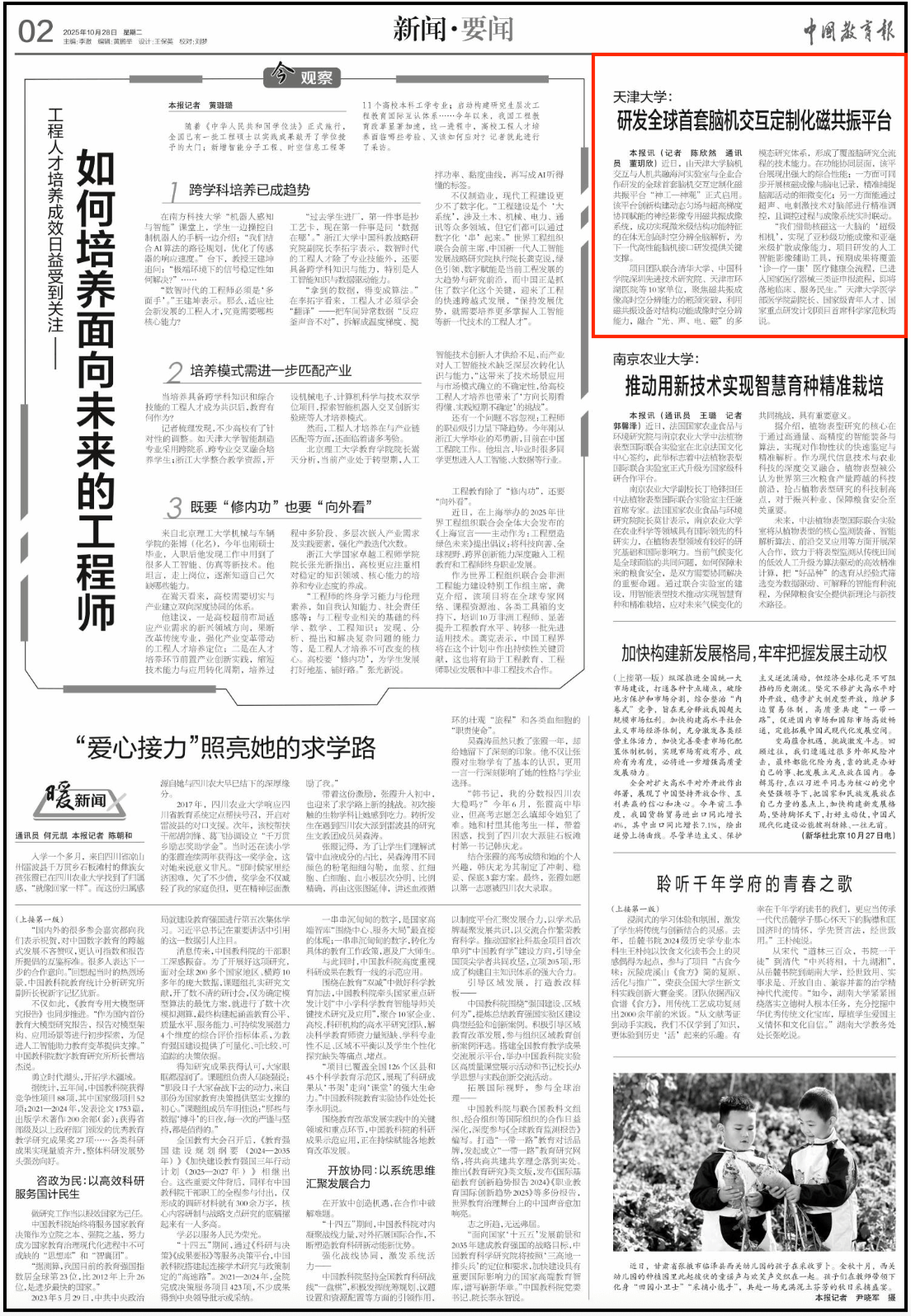 本报讯 近日,由天津大学脑机交互与人机共融海河实验室与企业合作研发的全球首套脑机交互定制化磁共振平台“神工—神观”正式启用。该平台创新构建动态匀场与超高梯度协同赋能的神经影像专用磁共振成像系统,成功实现微米级结构功能特征的在体无创高时空分辨全脑解析,为下一代高性能脑机接口研发提供关键支撑。