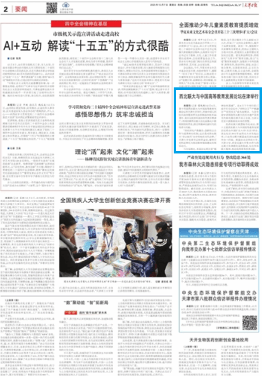 天津日报:天津日报数字报刊平台-西北联大与中国高等教育发展论坛在津举行 (tianjinwe.com)