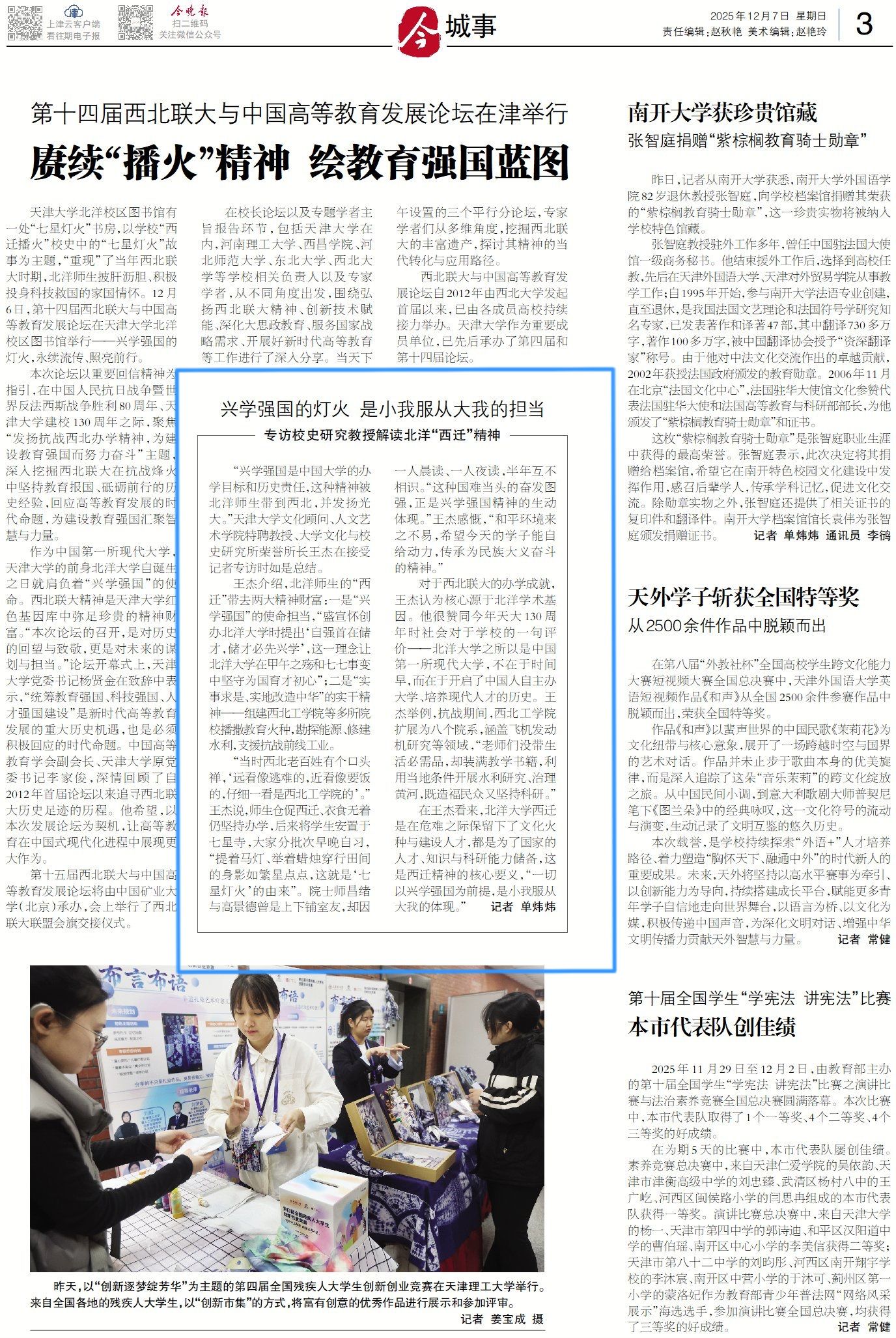 今晚报:兴学强国的灯火 是小我服从大我的担当专访校史研究教授解读北洋“西迁”精神