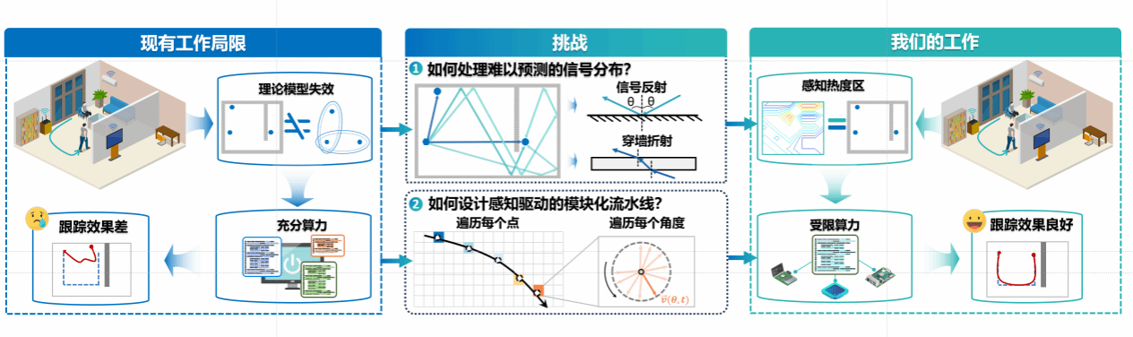 然而,要将实验室高精度感知应用带入真实家庭,必须解决两大现实瓶颈:一是系统部署繁琐,通常需要专业人员上门反复调试、标定智能设备位置;二是复杂家居环境中的信号遮挡、反射严重,导致感知不准。