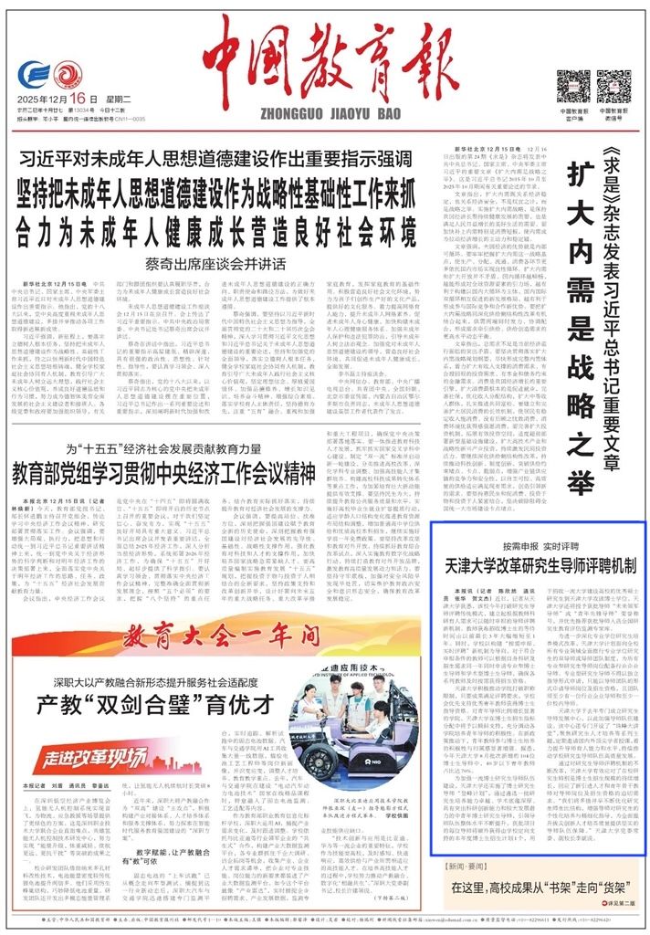 通过对研究生导师评聘机制的不断改革,天津大学有效应对了在校研究生特别是博士生招生规模的持续增长,回应了新引进人才和青年骨干教师对导师岗位及招生资格的迫切需求。“我们将多措并举不断优化研究生师生比结构,增强导师对研究生的个性化培养与精细化指导,为全面提升拔尖创新人才培养质量提供坚实的导师队伍保障。”天津大学党委常委、副校长李斌说。