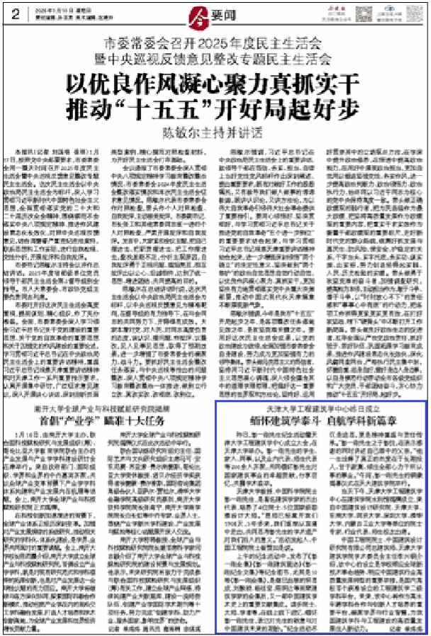 中国工程院院士、中国建筑设计研究院有限公司总建筑师、天津大学建筑学院学术委员会主任李兴钢介绍,该中心的设立是学校顺应全球新技术革命趋势、响应中国建筑行业高质量发展转型的重要举措,是国内高校首个获准设立的工程建筑学二级学科平台。未来,该中心将作为高水平跨学科合作与创新人才培养的重要平台,凝聚学界与行业智慧,为我国建筑学科与工程建设的高质量发展注入新动力。记者 单炜炜