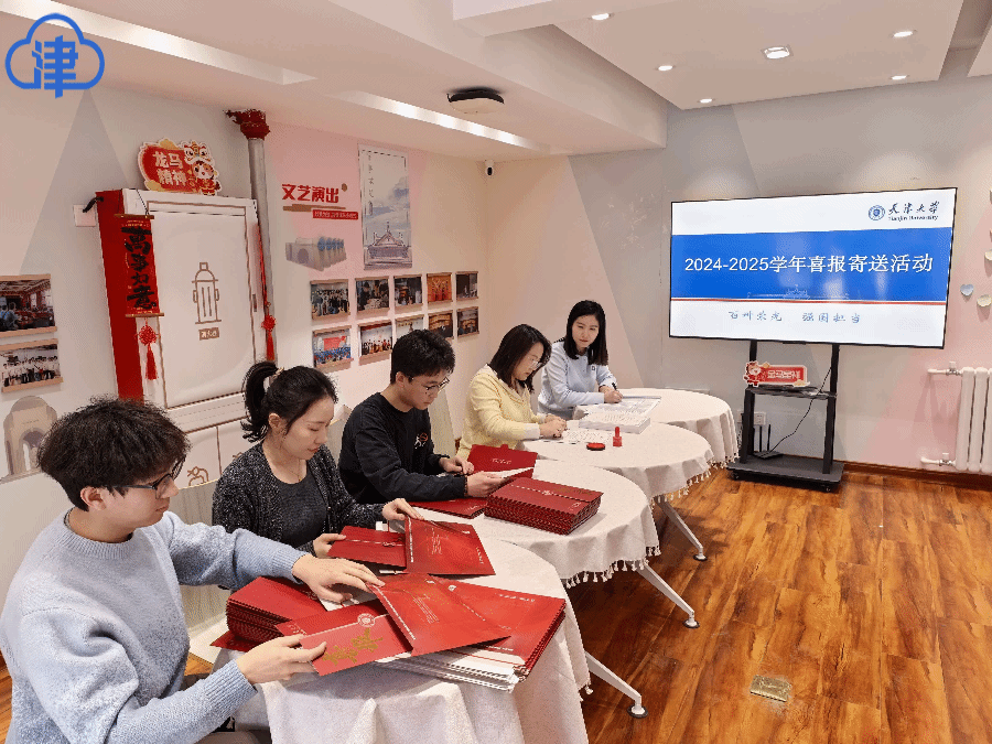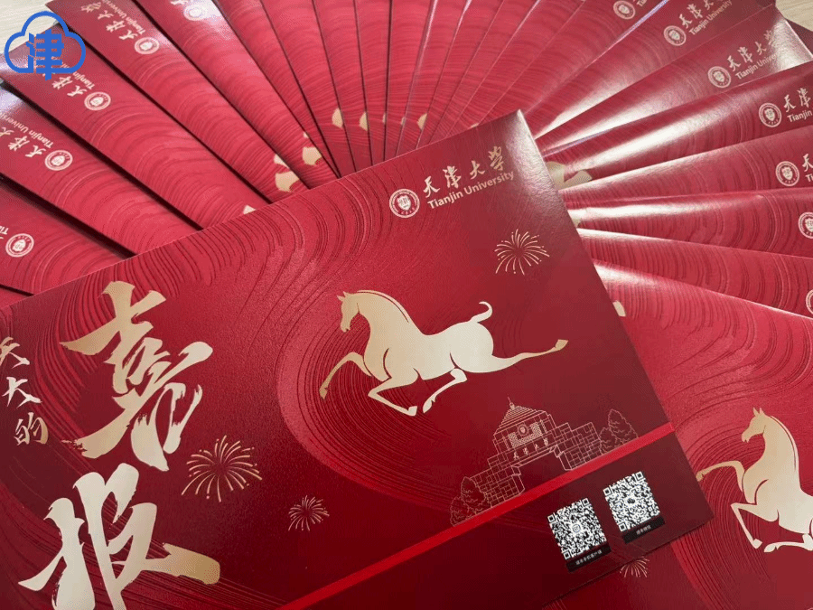 今年是天津大学建校130周年。喜报设计别具匠心。封面不仅巧妙融入了校徽、校门及标志性建筑等元素,更附上了马年新春的吉祥祝福。值得一提的是,从喜报的装壳、盖印到封装,全程由在校师生亲手完成。学校还精心设计了邮寄使用的快递包装袋,从设计巧思到指尖温度,这不仅仅是一个包裹,更成为一份来自校园的珍贵纪念,饱含着学校对学子的浓浓深情。
