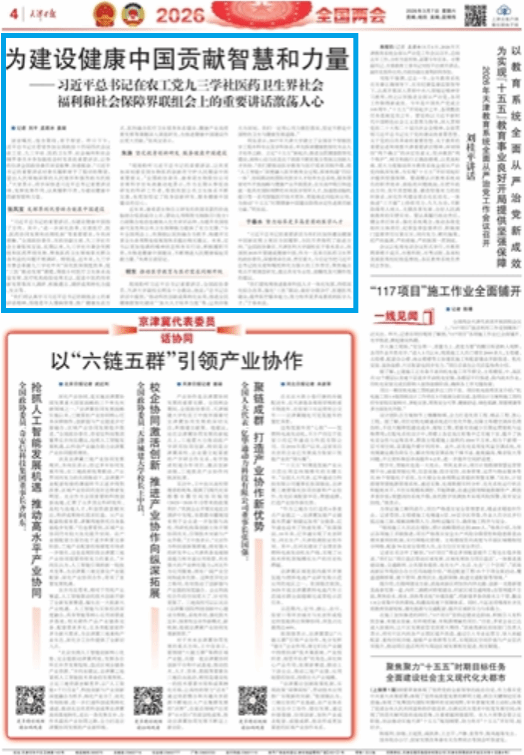 现场聆听习近平总书记重要讲话,全国政协委员、天津大学副校长明东十分激动,他说:“总书记在讲话中提到,‘推动科技创新成果转化运用,推进全民健康数智化建设’‘加大人才培养力度’等,让我印象尤为深刻。我们一定用心用力做好落实,坚定不移走中国特色卫生与健康发展道路。”