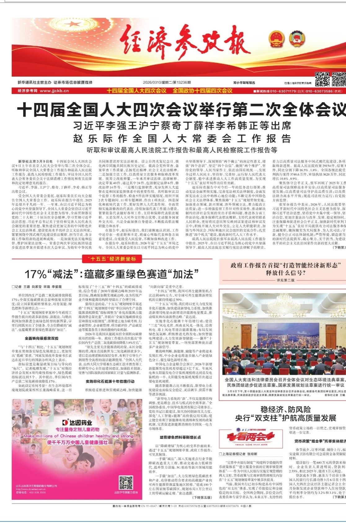 新华社北京3月10日电 《经济参考报》3月10日刊发文章《“十五五”经济新坐标|17%“减法”:蕴藏多重绿色赛道“加法”》。文章称,单位国内生产总值二氧化碳排放降低17%;全面实施碳排放总量和强度双控制度;设立国家低碳转型基金,培育氢能、绿色燃料等新增长点……
