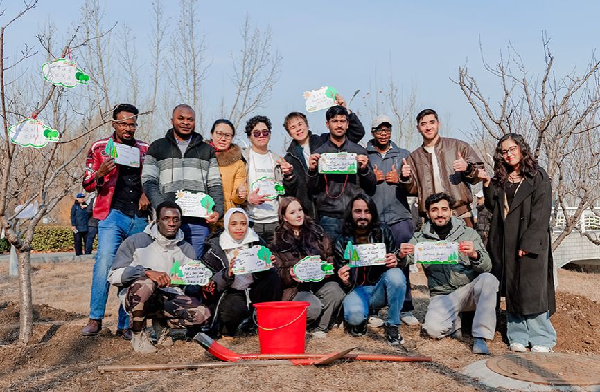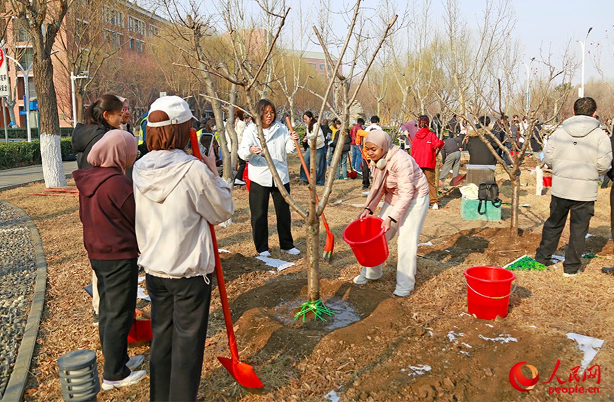 人民网:不负春光添新绿 中外师生共植友谊林--天津频道--人民网