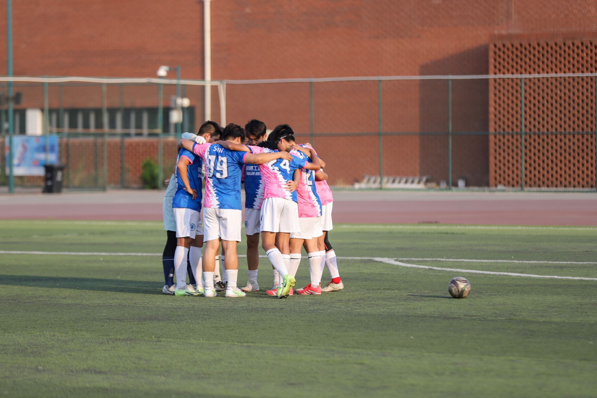 球员开球前互相加油