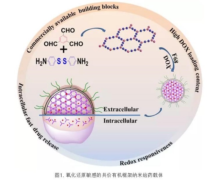 本站讯(通讯员 李莎)天津大学化工学院张建华副教授课题组开发了一种简易、高效、低成本制备富含二硫键的共价有机框架纳米给药载体的新方法,构筑基元简单易得,所制备纳米载体不仅能高效负载阿霉素,还能智能感应肿瘤细胞内的特异性氧化还原微环境,从而发生解体并快速释放药物。