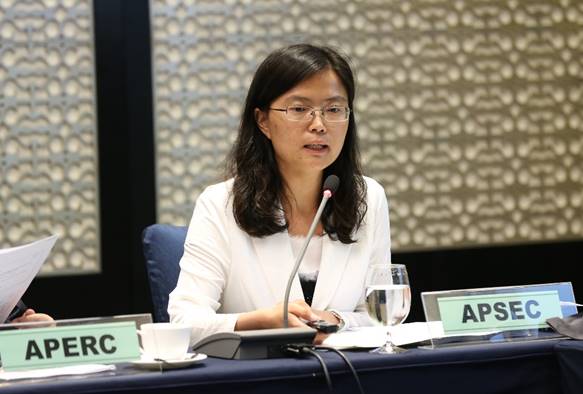 实体研究中心汇报环节,朱丽主任就项目研究、旗舰论坛、会议活动和工作计划等进行整体介绍。EWG主席及参会代表肯定了APSEC的建设成果,并支持未来五年APSEC继续作为APEC EWG的实体研究机构参与APEC能源相关工作。