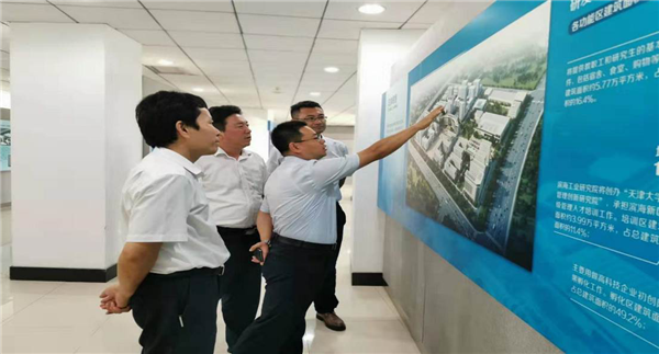 本站讯 9月4日下午,天津港保税区管委会副主任朱玉兵、保税区科技局局长李金辉一行到访天津大学滨海工业研究院校区,就研究生院建设、顶尖人才引进、科技创新平台建设、企业孵化等开展考察调研。天津大学区域发展研究院院长杨明海、副书记王春玲、副院长林漫群陪同考察活动。