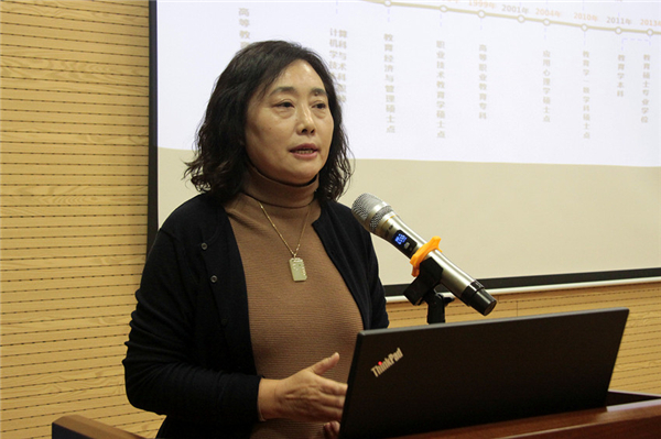 闫广芬代表教育学院全体师生对13位青年学者表示欢迎。在致辞中,她从学院发展历史、发展现状和发展愿景三个方面,详细介绍了学院建院历史、人才培养、师资队伍建设、学科建设、合作交流和社会服务等方面的情况。她强调,教育学院始终秉持天津大学“实事求是”的校训和“严谨治学”的校风,始终传承“教天下英才,育家国情怀”的院训,坚持具有天大精神的教育学科办学特色,以教育学一级学科博士点为支撑,构建包括高等教育学(新工科)、职业技术教育学、研究生教育学和学习科学的学科发展布局。她表示,教育学院正在打造一支年龄结构年轻化、学科结构多样化、学缘结构多元化的师资队伍,渴望并真诚欢迎优秀青年人才加入教育学院干事创业的大家庭。