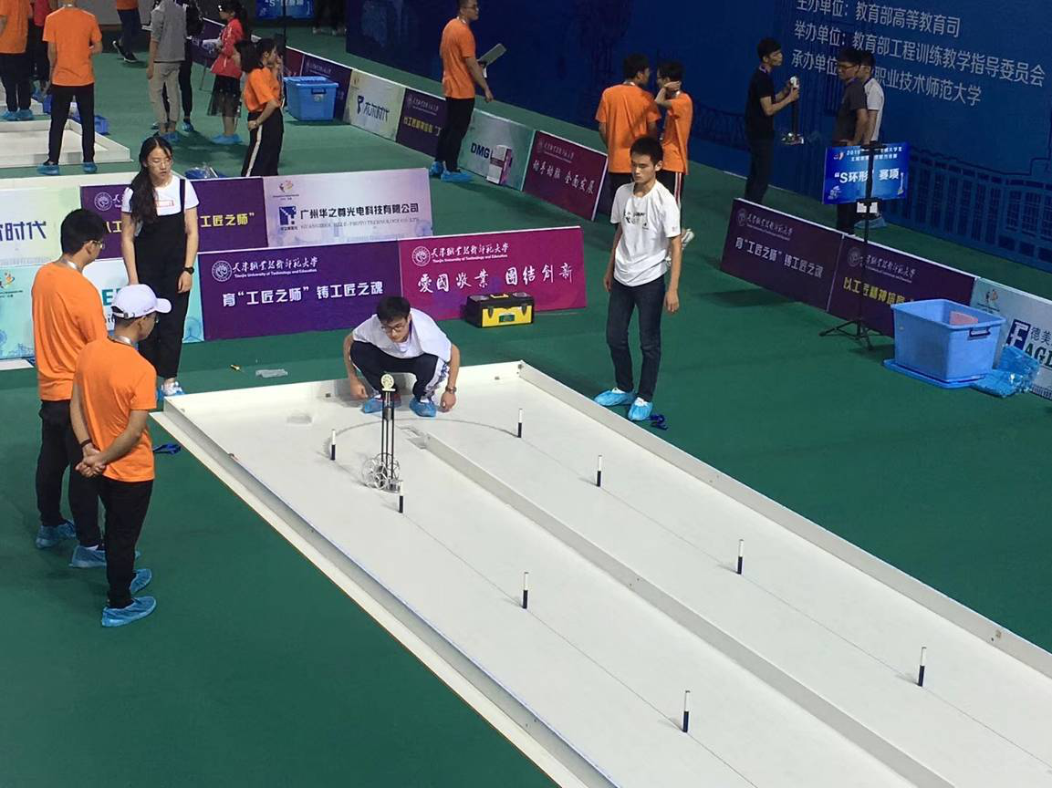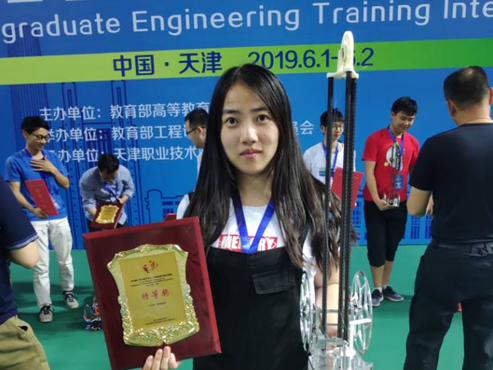 以求是学部杨雨馨同学为队长的天津大学代表队,在范胜波和王辉老师的指导下,自主设计并制作具有方向控制功能的自行无碳小车,无碳小车的行走过程中完成所有动作所需的能量,均由给定重力势能转换而得,而且在小车行径的途中自动避开障碍桩,最后以避开障碍桩的多少为最终成绩。竞赛还包括3D打印比赛、拆装比赛、调试比赛、文件报告制图比赛等,最后根据以各项比赛的总分给各参赛队伍排名。天津大学代表队以总分第一名的好成绩获得特等奖。