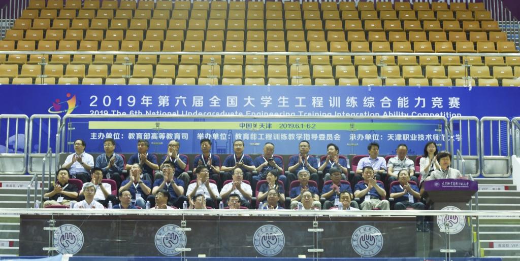 教育部高教司一级巡视员宋毅,教育部高教司课程教材与实验室处调研员张庆国,教育部高等学校工程训练教学指导委员会副主任、清华大学基础工业训练中心主任李双寿、合肥工业大学人事部部长朱华炳、西安理工大学副校长李言,教育部高等学校工程训练教学指导委员会秘书长、大连理工大学机械工程学院院长兼工程训练中心主任王永青,天津市教育委员会副主任白海力,天津职业技术师范大学党委书记张金刚、校长刘欣出席总决赛开幕式。
