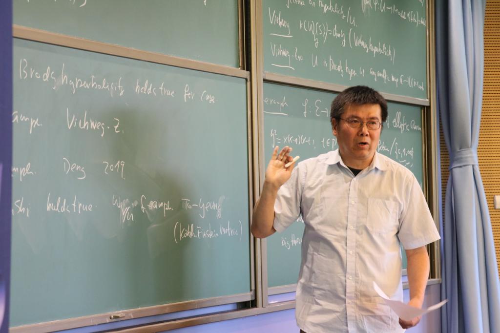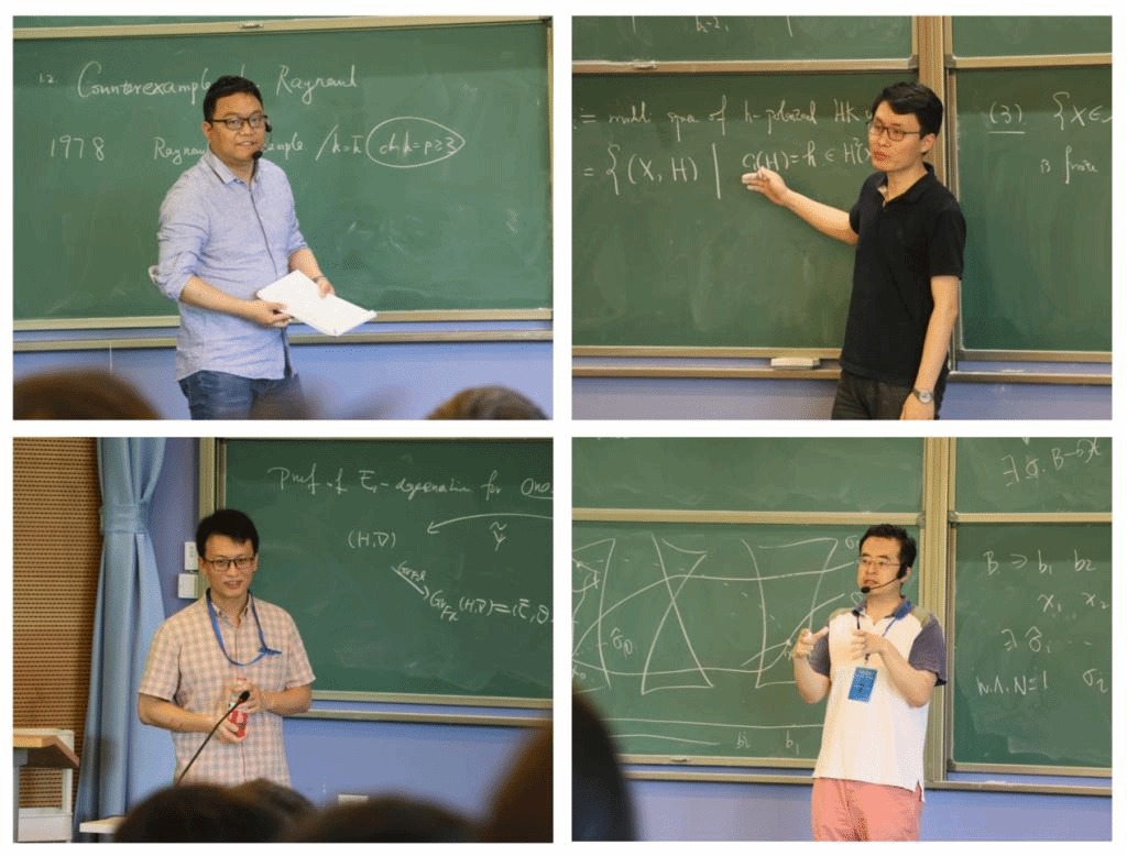 四位国内报告人分别做了一小时报告。苏州大学顾怡阐释了他与合作者关于正特征代数曲面上Miyaoka-Yau型不等式的最新结果;复旦大学李志远带来了他与合作者关于非极化Shafarevich型问题的最新进展以及与Torelli定理的关系;中国科学技术大学盛茂重点分析了相交de Rham复形上的分解定理的推广,并给出了E1退化的一种纯代数证明;北京大学田志宇诠释了其与合作者关于正特征上光滑Fano超曲面上弱近似问题的一些最新进展。