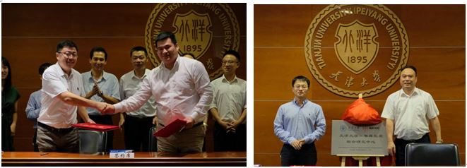联合研究中心主任吕石磊教授代表天津大学与北京华厚能源科技有限公司贾维总经理共同签订了联合研究中心共建协议。张腾飞和谢松华共同为联合研究中心揭牌。