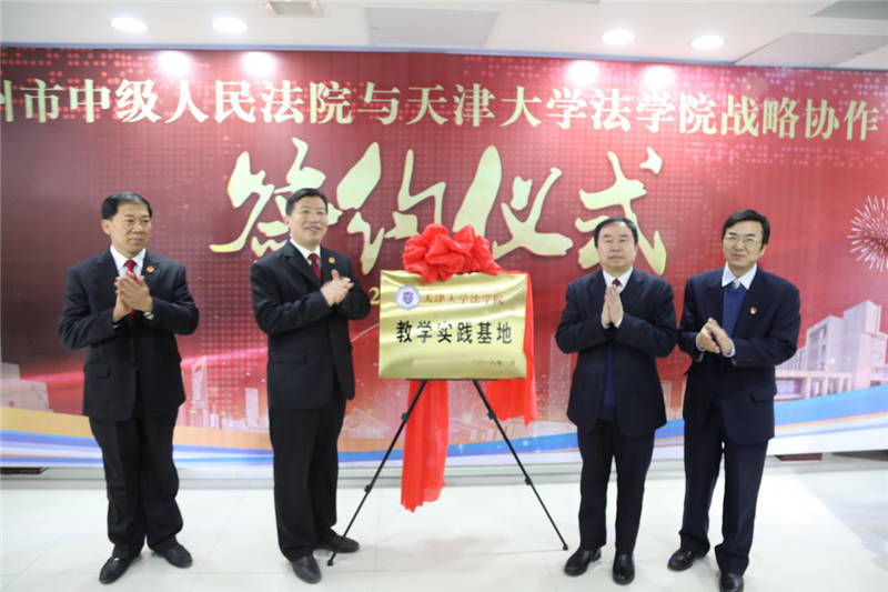 融合发展。天津大学法学院院长孙佑海,德州中院党组书记、院长孟祥刚分别致辞,作为双方代表签字,并为教学实践基地揭牌。天津大学法学院党委书记杨欢,天津大学法学院党委副书记、副院长李明,天津大学法学院教授俞风雷参加。德州中院党组副书记、副院长郭仁军主持仪式。德州中院党组成员、副院长李文铎宣读《关于德州市中级人民法院聘请天津大学兼职教授的决定》。德州中院党组成员、副院长、政治部主任李秀政,德州中院党组成员、专职审委会委员杨炳超,德州中院各业务庭庭长和相关部门负责人参加签约仪式。