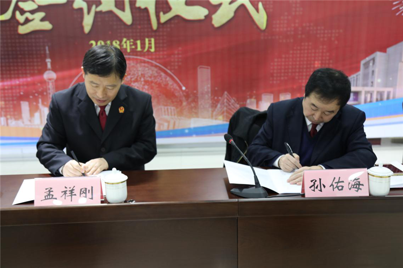 孙佑海院长和孟祥刚院长签约并互换协议。