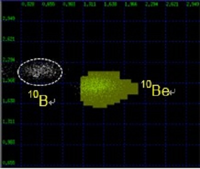 加速器物理学与质谱学的学科交叉产生了加速器质谱学(Accelerator Mass Spectrometry, AMS),其分析技术诞生于20世纪80年代,是利用加速器将负离子加速到较高的能量,然后利用不同价态离子质量、能量的微小差异进行鉴别,从而得到样品中特定核素含量的一种分析方法。与传统质谱分析技术相比,加速器质谱分析技术具有较高能量、排除同量异位素以及分子离子干扰的特点,因而可有效地将特定核素与其同量异位素(Isobaric)或干扰核素(Interference)(例如:14C与同量异位素14N以及干扰分子离子12C1H2, 13C1H等;10Be与10B;26Al与26Mg, 13C2)进行分离,从而对特定核素含量进行精确测定。