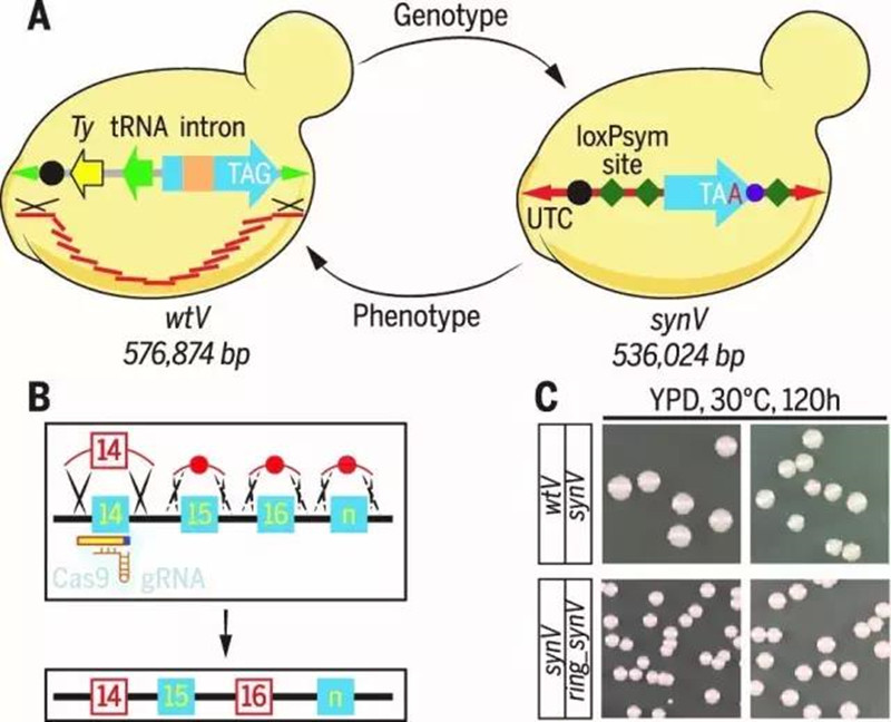 本站讯 (记者 靳莹) 3月10日,天津大学化工学院元英进教授团队在《科学》期刊上发表了两篇研究长文,介绍了在真核生物基因组设计与合成方面取得的重大突破。团队完成了真核生物酿酒酵母2条染色体(synⅤ、synⅩ)的设计与化学合成。元英进是这两篇《科学》文章的通讯作者,天津大学博士生吴毅和 “国家优青获得者”李炳志是研究长文《化学合成10号染色体缺陷靶点定位与生长表征》的共同第一作者,博士生谢泽雄和李炳志是研究长文《完美设计合成5号染色体及其环化表型研究》的共同第一作者。人工设计与合成生命是人类长久以来的梦想,DNA编码了生命的遗传信息,基因组的合成标志着人类对生物本质的研究进入了生命合成阶段,非生命物质与生命的界限开始打破,人类开启了“设计生命、再造生命和重塑生命”的进程。