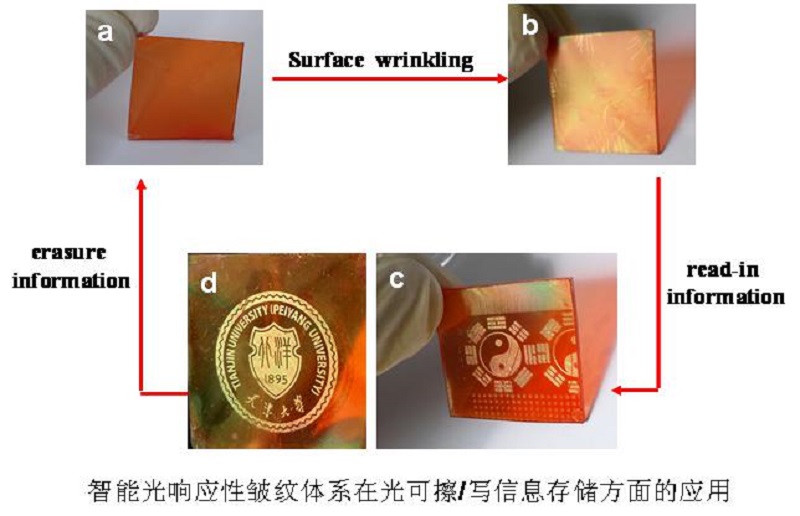 本站讯(通讯员 王颖)近日,天大材料学院高分子研究所鲁从华教授课题组与清华大学力学系曹艳平教授课题组合作,在化学领域国际权威期刊《德国应用化学》(Angew. Chem. Int. Ed. 2016,128,3999-4003)上以VIP文章形式发表了关于皱纹智能调控方面的研究工作“Tuning and Erasing Surface Wrinkles by Reversible Visible-Light-Induced Photoisomerization”。